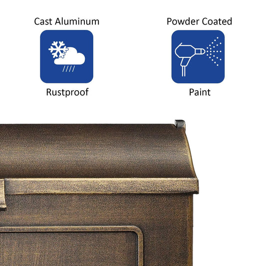 Cast Aluminum Metal Mailbox with Newspaper Hooks, Easy to Install Wall Mount, Heavy Duty, Rustproof Paint, Horizontal Mail Box for Outside House Porch - 16” x 4.25” x 8.25” (Antique Bronze)