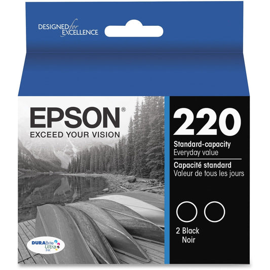 EPSON 220 DURABrite Ultra Ink Standard Capacity Black Dual Cartridge Pack (T220120-D2) Works with WorkForce WF-2630, WF-2650, WF-2660, WF-2750, WF-2760, Expression XP-320, XP-420, XP-424