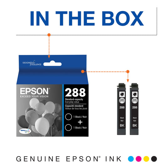 EPSON 288 DURABrite Ultra Ink Standard Capacity Black Dual Cartridge Pack (T288120-D2) Works with Expression XP-330, XP-430, XP-434, XP-340, XP-440, XP-446