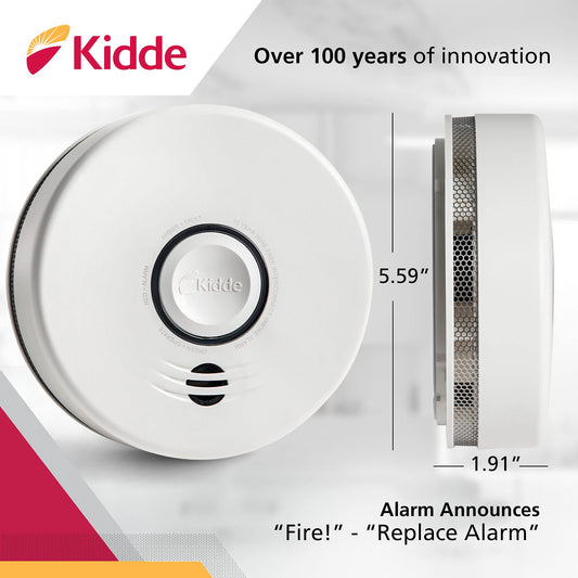 Kidde Smoke Detector, 10-Year Battery, Photoelectric Sensor Wire-Free Interconnect Smoke Alarm, Voice Alert, White, 2 Count