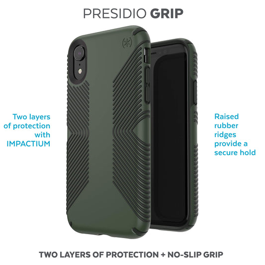 Speck Products Compatible Phone Case for Apple iPhone XR, Presidio Grip Case, Dolphin Grey/Aloe Green