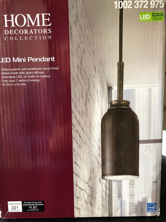 Home Decorators LED Mini Pendant Gilded Pewter with weathered wood finish Collection 16.31 x 6 7watt Dimmable