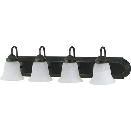 Progress Lighting Solvang 30 in. 4-Light Antique Bronze Vanity Light with Etched Alabaster Glass Shades