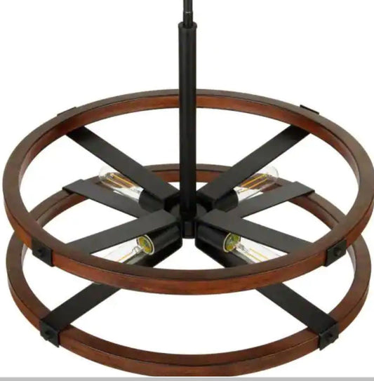 Home Decorators Rockland 4-Light Matte Black Round Drum Pendant Hanging Light, Industrial Style Kitchen Pendant (HB3637-43)