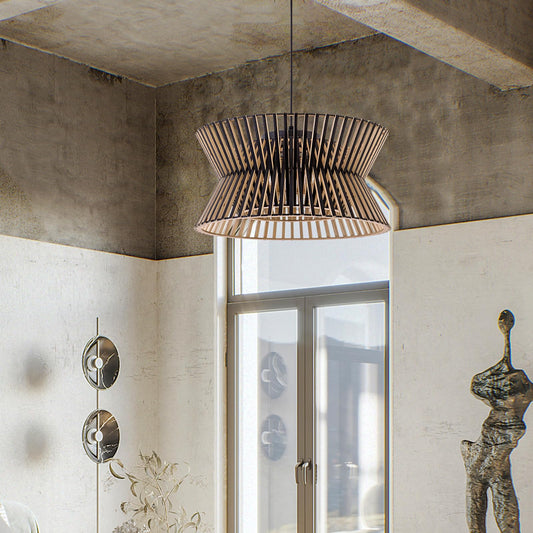 Maxax Wooden Chandelier, 17.7'' Pendant Light Fixture with Boho Wicker Shade, 3-Light Wood Farmhouse Ceiling Light for Living Room, Bedroom, Kitchen