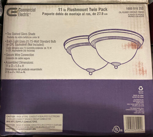 NEW COMMERCIAL ELECTRIC 11 in. 1-Light Oil Rubbed Bronze Flush Mount w/ Frosted