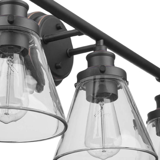 Globe Electric 50192 Parker 5-Piece All-In-One Bathroom Set, Oil Rubbed Bronze, 3-Light Vanity Light with Clear Glass Shades, Towel Bar, Towel Ring, Robe Hook, Toilet Paper Holder, Oil-rubbed Bronze
