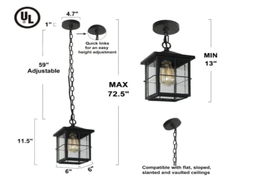 Seeded Glass Shade Black Outdoor Hanging Lantern 1-Light Coastal Pendant