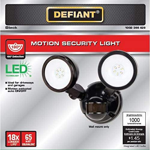 Defiant 180 Degree Black Motion Activated Outdoor Integrated LED Twin Head Flood Light