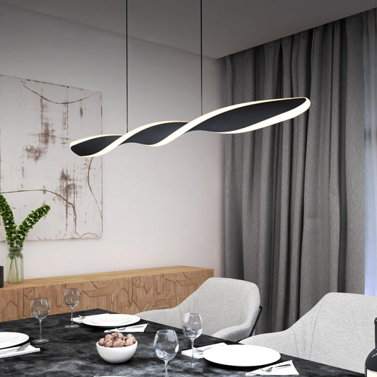 39.37 in. 1-Light Gray Modern Wave Shape Shaded Integrated LED Pendant Light for Dining Room