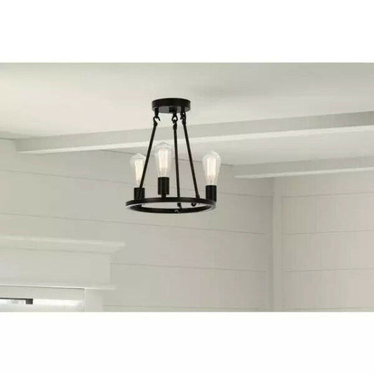 Hampton Bay Stratton 14 in. 3-Light Black Semi-Flush Mount HDP00007