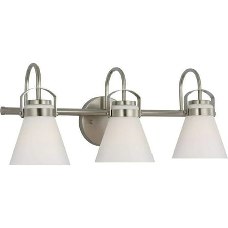 Progress Lighting McClimon 22.12 in. 3-Light Brushed Nickel Luxe Vanity Light for Bathroom Mirror with Etched Opal Glass Shades