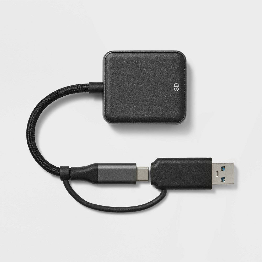 Experience seamless data transfer with the sleek Card Reader from heyday? in Black. This USB-C to USB-A adapter effortlessly connects to your devices, allowing you to access and manage your SD and microSD cards with ease. Designed for easy portability, its lightweight construction lets you easily tuck it in a corner of your backpack and carry it around with ease. heyday?: Let your style speak volumes.