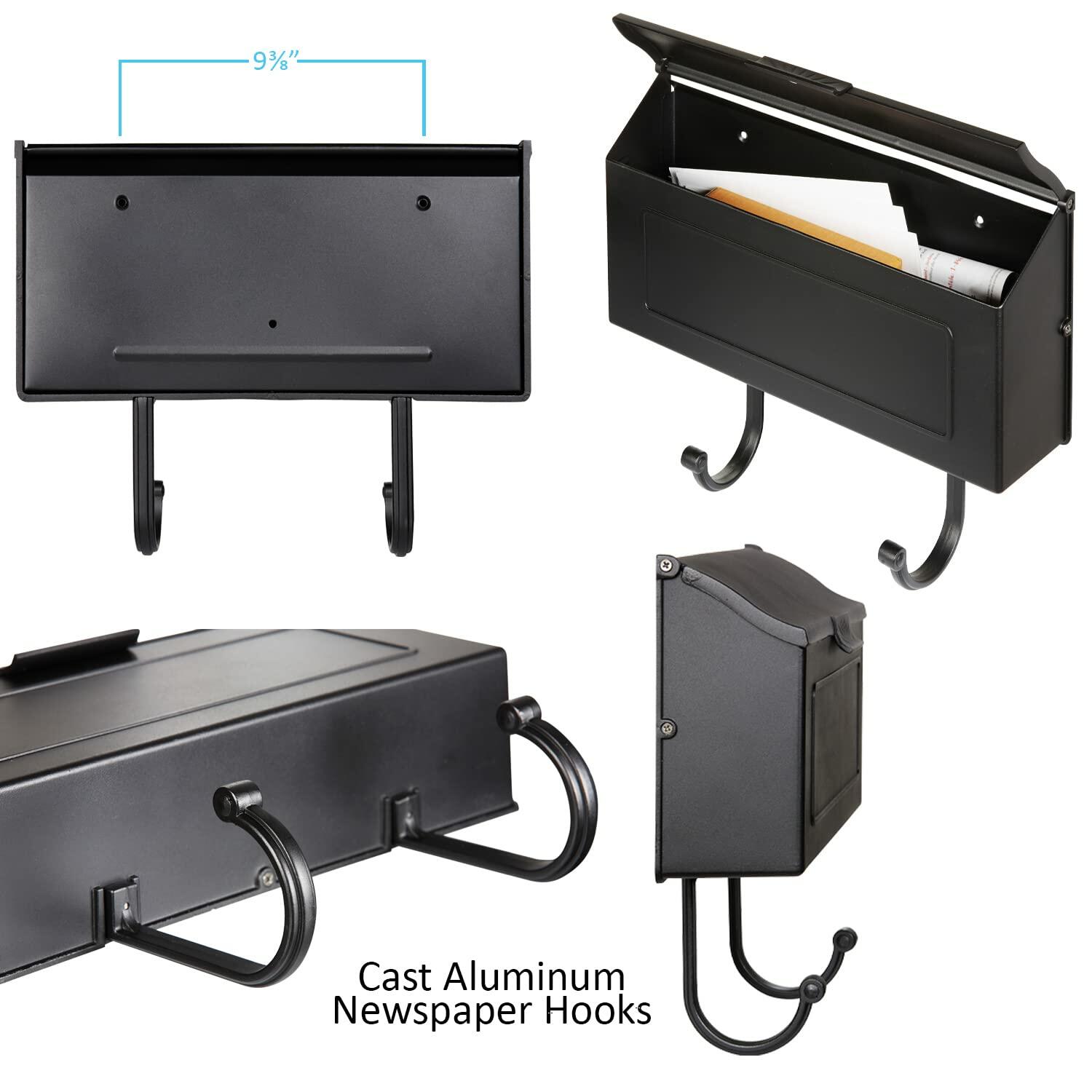 - Complete Bundle: This set includes a medium-compartment wall-mounted mailbox ideal for bundled mail & small parcels. The wall mounted mailbox also comes with two newspaper hooks that are very sturdy and useful to receive the weekly flyer's and newspapers.