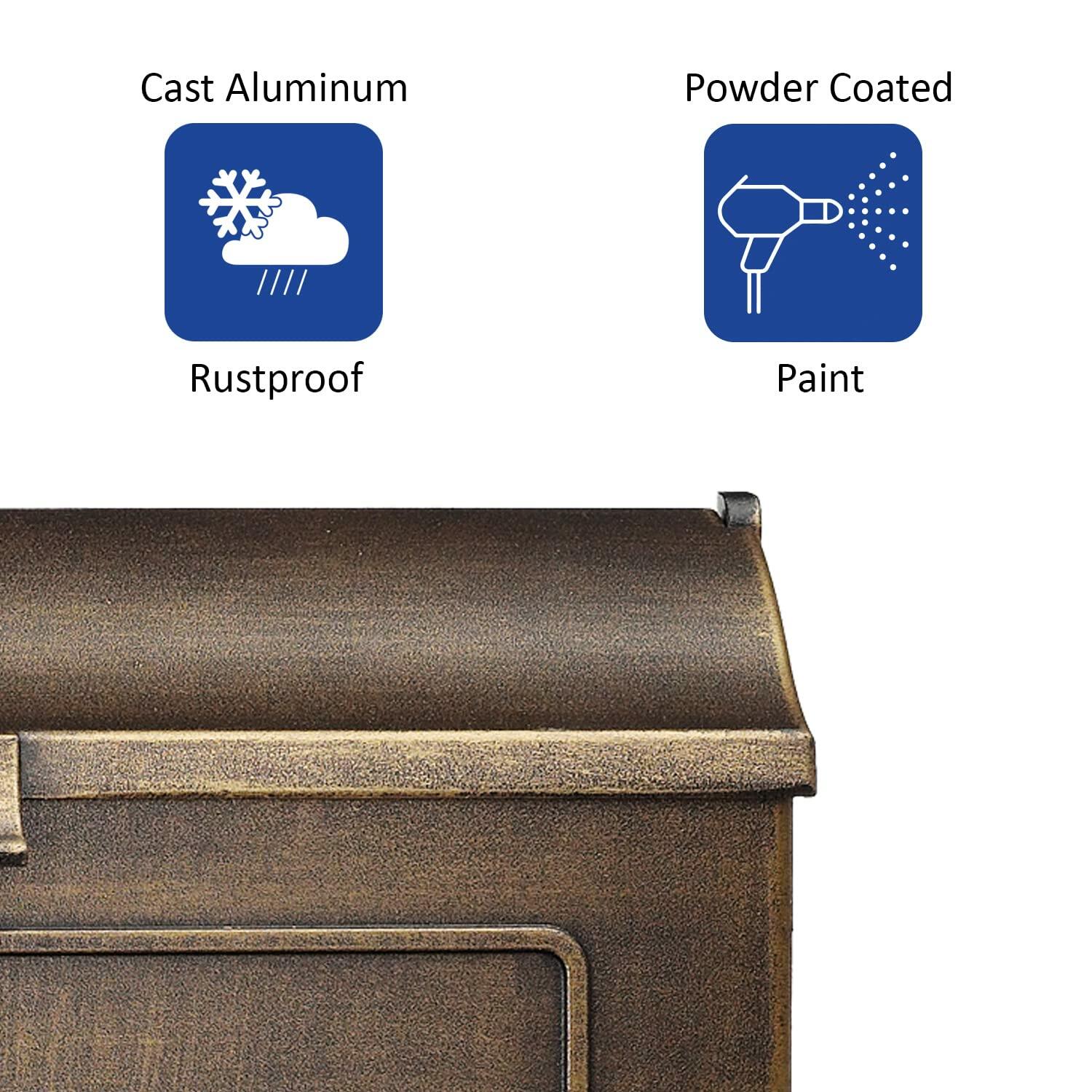 - Traditional Design: Enhance your curb appeal with this timeless design. The classic look of the heavy duty mailbox adds a stylish statement to your home. Complement your entrance with our cast aluminum mailbox with newspaper hooks.