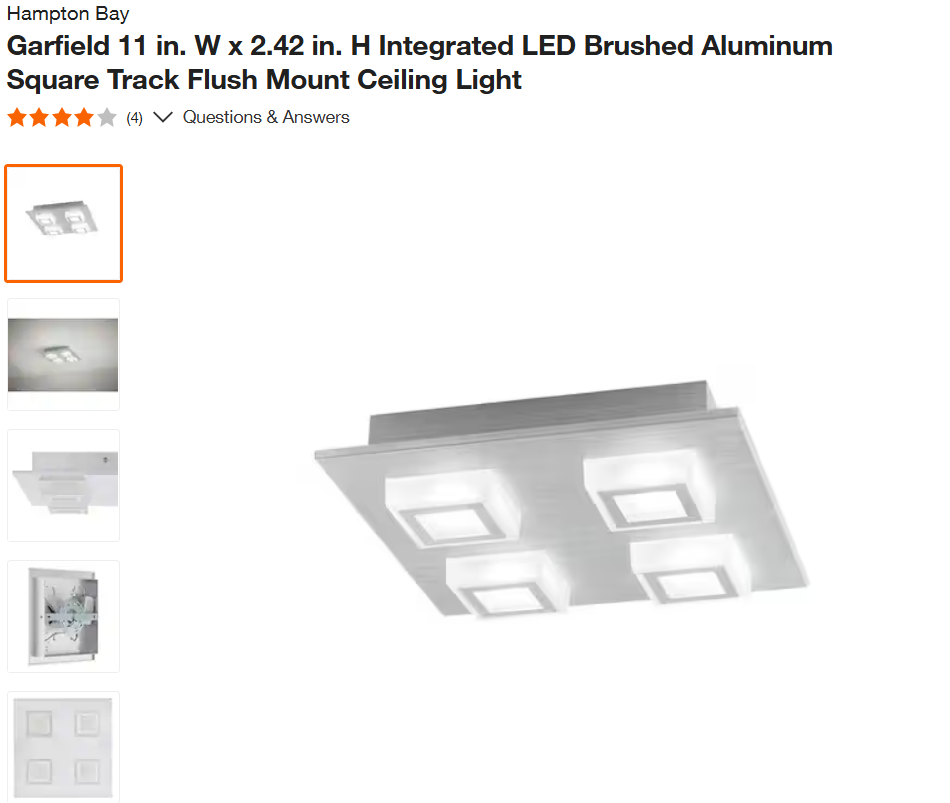 Hampton Bay 205517A Garfield 11" Brushed Aluminum Square Track Ceiling Light