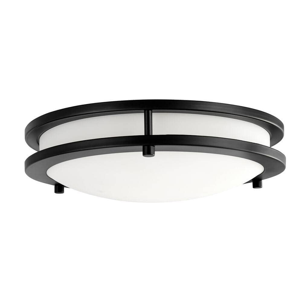 HAMPTON BAY Flaxmere 12 in. Matte Black Dimmable Integrated LED Flush Mount