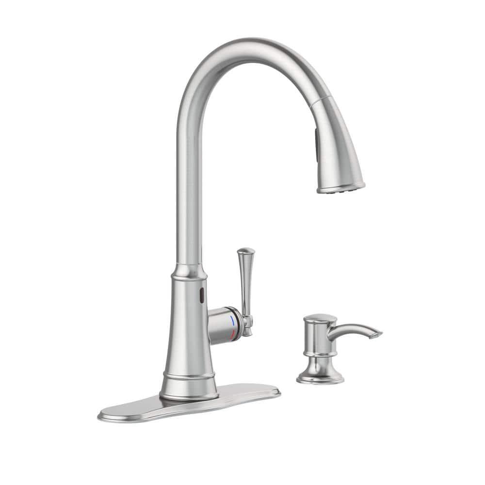 Hemming Single-Handle Touchless Pull Down Sprayer Kitchen Faucet with Soap Dispenser in Spot Resistant Stainless Steel