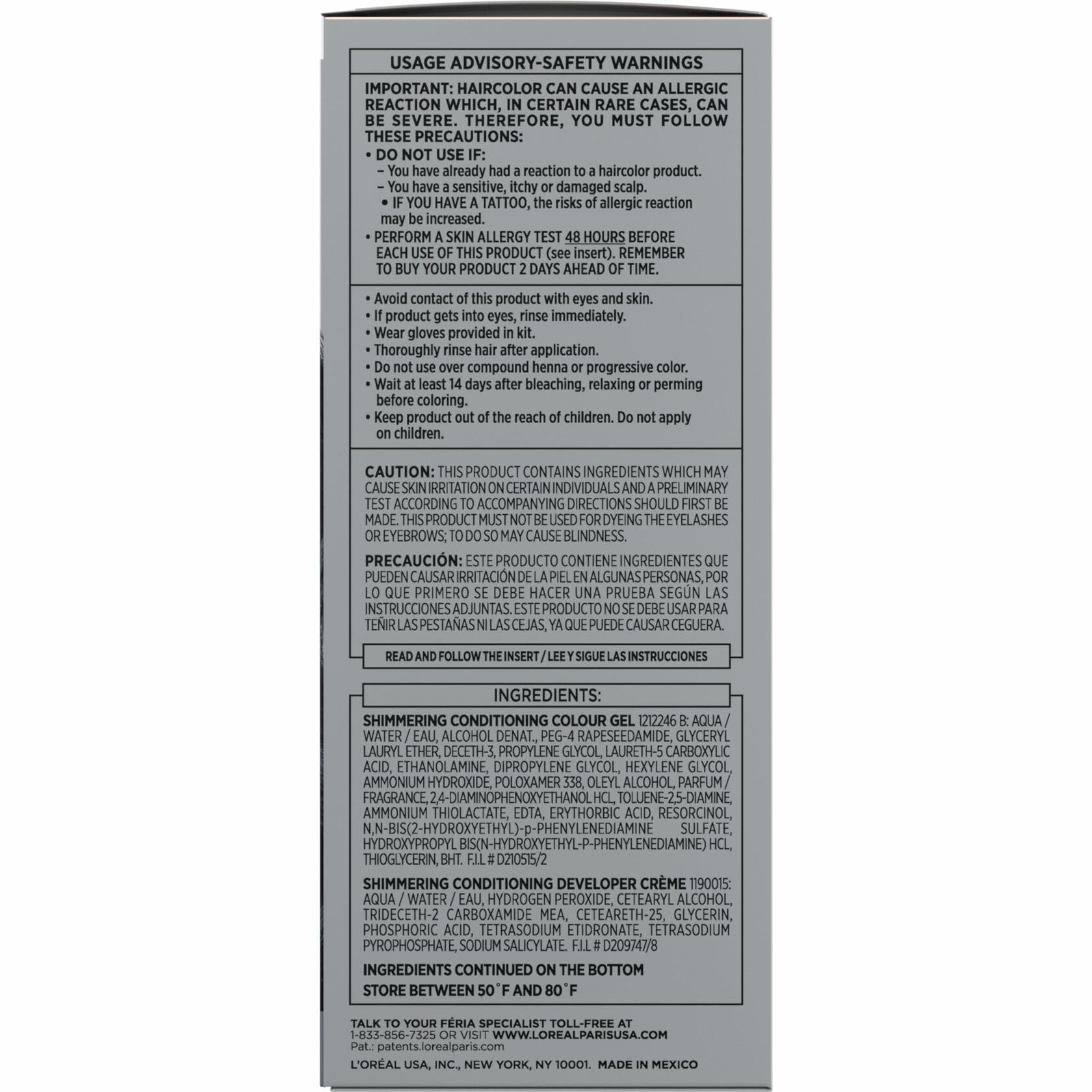 With L'Oreal Feria, what you see is the shimmer. Multi-Faceted shimmering color with 3X highlights delivers intensified, brilliant results. Inspired by fashion, Feria offers a twist on the traditional and gives edgy hair color - from bright red, platinum blonde, rose gold, metallic brown, to blue black hair color, these hair dye kits will transform your hair. Feria's prismatic color spectrum is custom-blended by L'Oreal master colorists for bold, head-turning shades - no appointment necessary. The Power Shimmer Conditioner seals and smooths. Won't wreck or ravage hair.