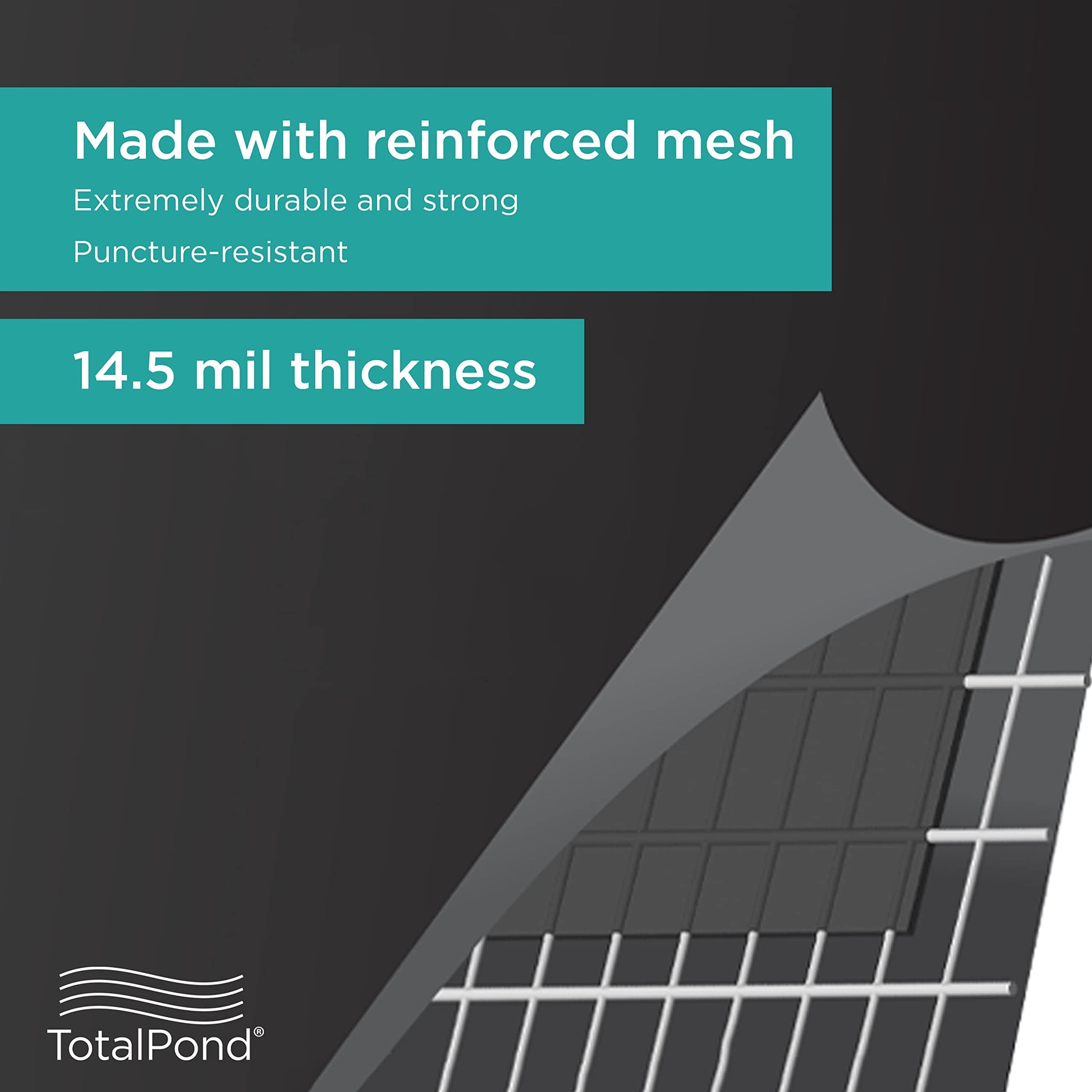 TotalPond 7 x 10 ft. PVC Pond Liner, For Ponds up to 200 Gallons, 14.5 mil, Flexible and Easy to Install, Durable and Strong Reinforced Mesh Weave, UV and Tear Resistant, Multi-Purpose Use, Black